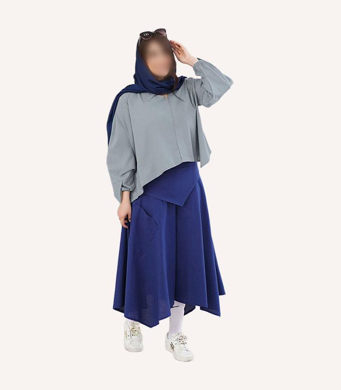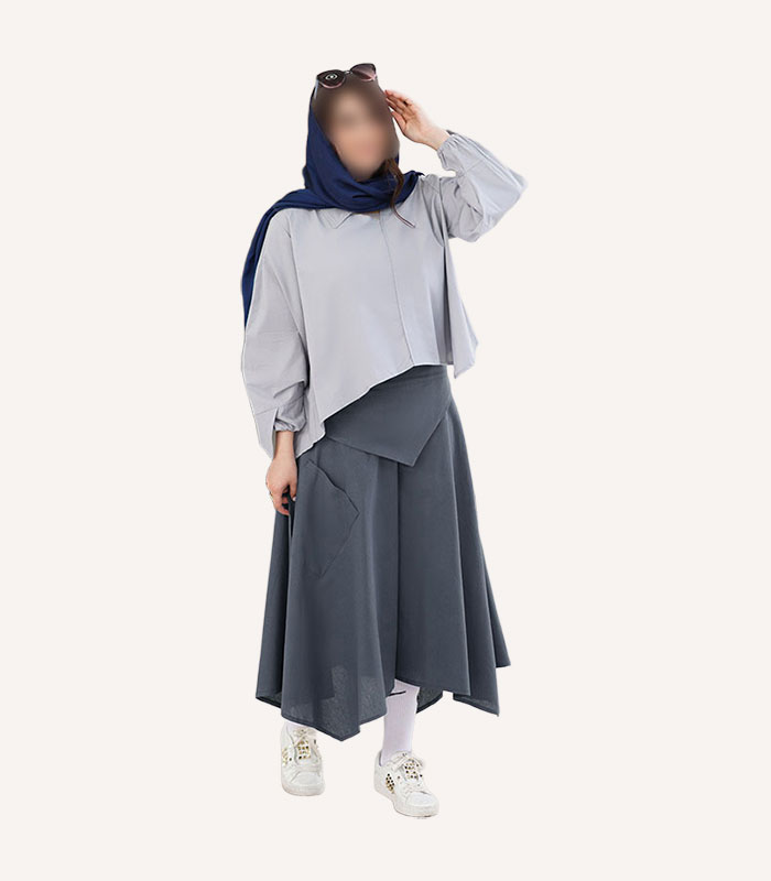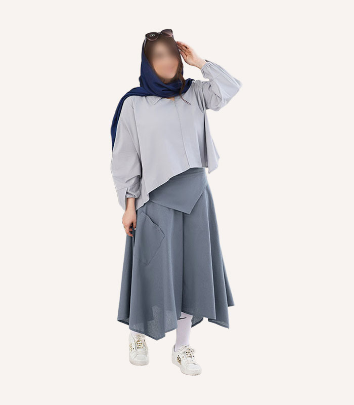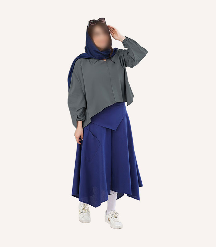 - ست دو تکه شومیز دامن شلواری مثلثی فریسایز